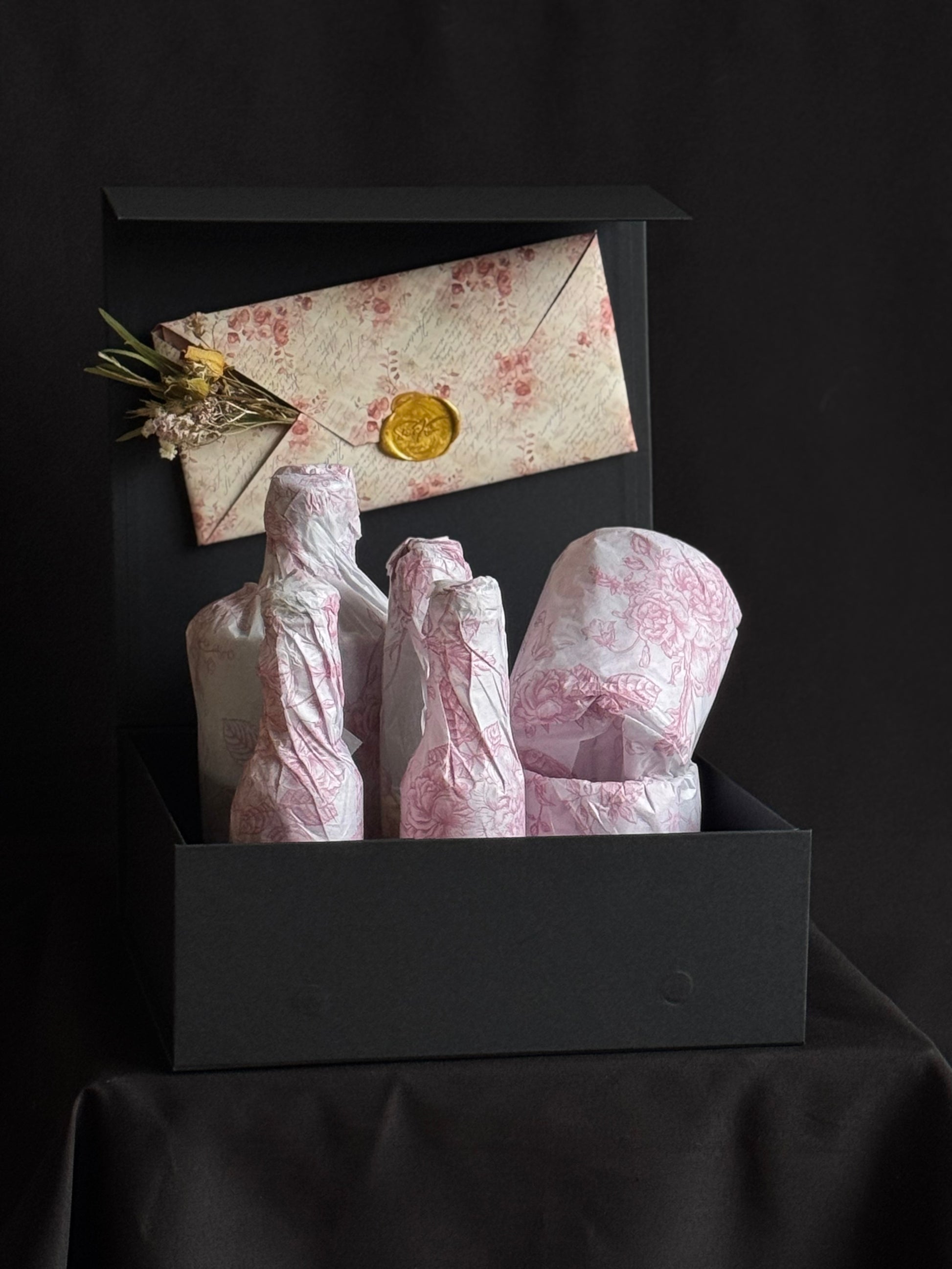 Luxury box including 1 bottle Shiso and Kaffir, 1 cherry soda, 1 grapefruit soda,1 tonic from Three Cents and 2 tumbler cocktail glasses. ❗️Only three tonic and soda flavours are shown, but you can choose any flavours you like from our collection, up to three.