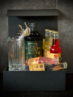 Luxury box including 1 bottle Shiso and Kaffir, 1 cherry soda, 1 fig leaf soda, 1 ginger bier, 1 grapefruit soda, 1 tonic from Three Cents and 2 long cocktail glasses.